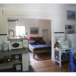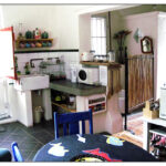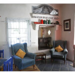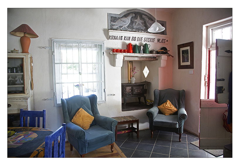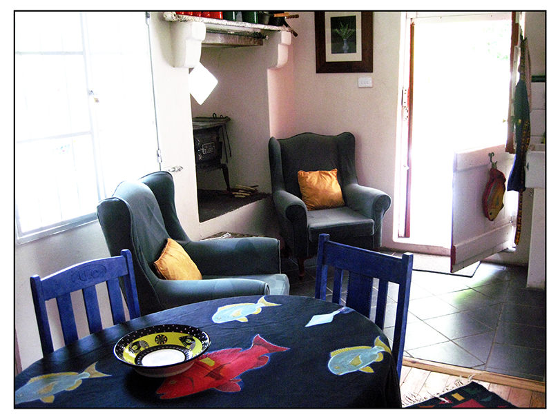 Cosy seating area surrounds a beautiful old Dover wood stove