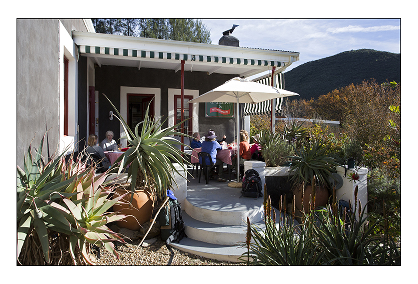 You can sit on the sunny stoep while your eyes feast on the view and savour fine coffee or an assortment of teas or sip on homemade lemonade. All the different biscotti, rusks, koeksisters, delicious savoury tarts and chicken pies are homemade and the freshest salad is picked straight from the garden. The surrounding garden is a paradise of plants and flashing birds- a place where heaven begins.